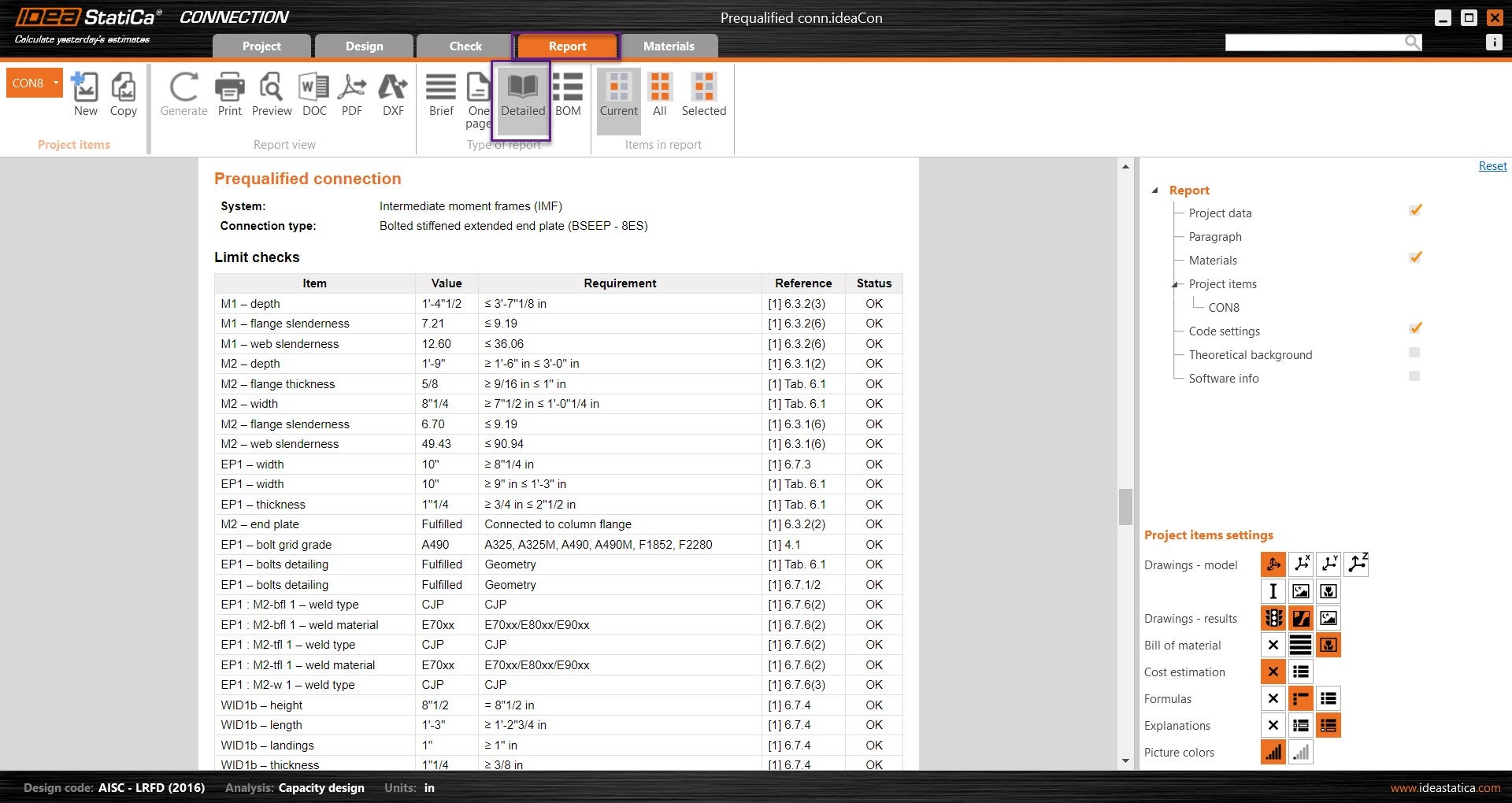 Read our theoretical background for capacity design for more detailed information about the features that will reduce the time spent code-checking prequalified steel connections.