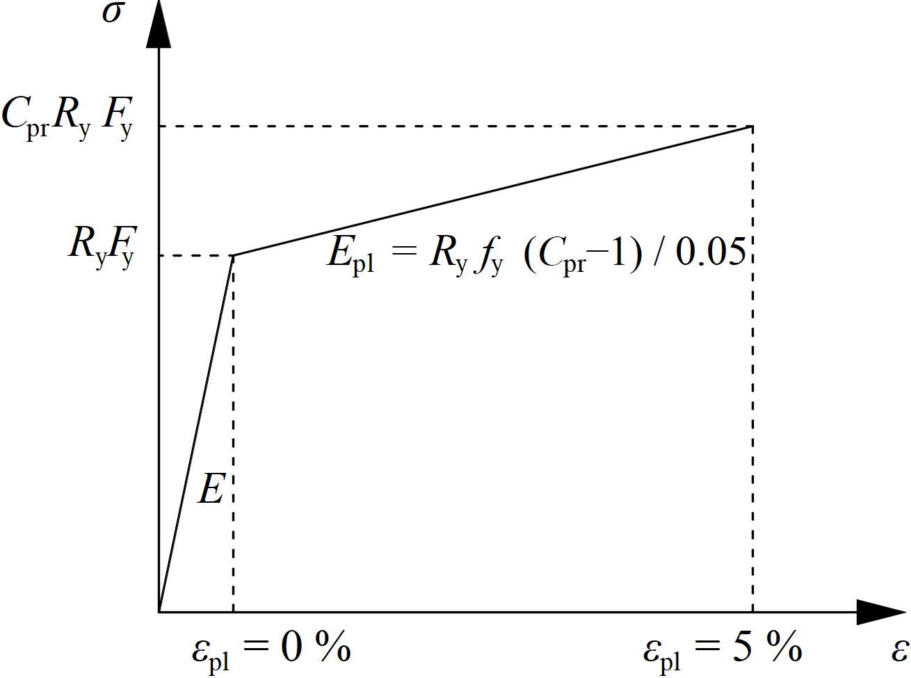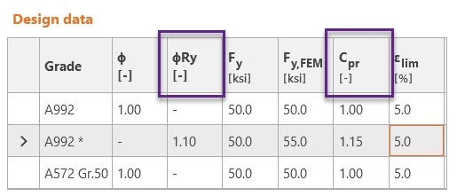 When the analysis is running, the dissipative item material strength is increased by the overstrength factor (Ry) and hardening factor (CPr).