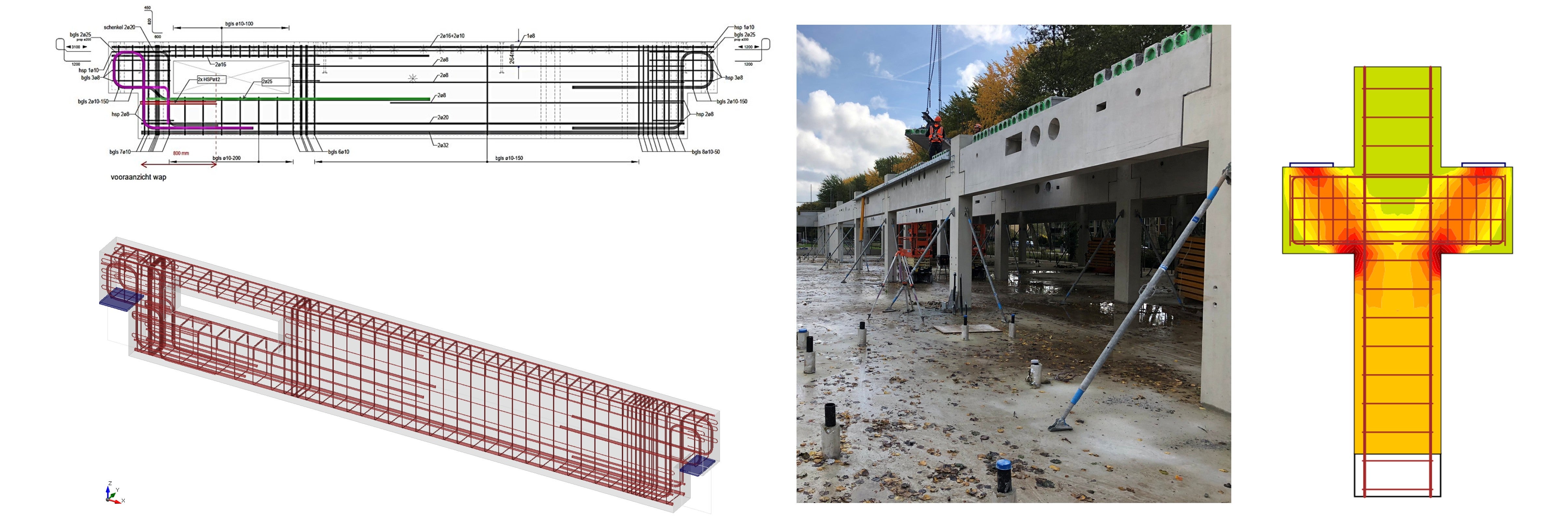 Structures must not only comply during the use phase, but also in temporary situations such as transport and lifting operations at the construction site. This is crucial with precast because the elements are produced in the factory and then transported and assembled as a whole. Pre-stressed beams in particular require extra attention here: they enable large spans with slender cross-sections, but are susceptible to instability along the way.