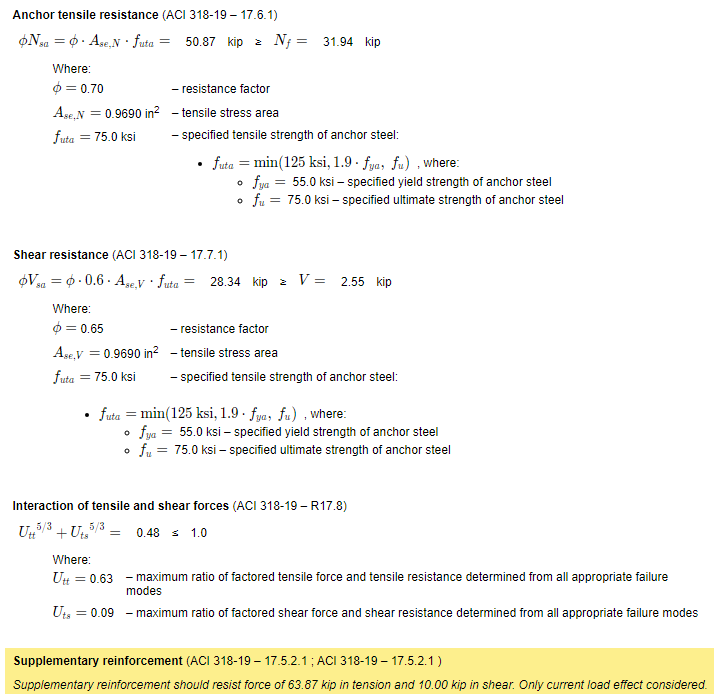 You can now remove the concrete breakout checks from the results and instead receive the anchor forces needed to design the supplementary reinforcement.