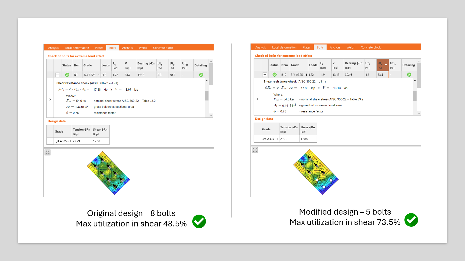 • Seamless Code Compliance: Automatically validate that your modified connections meet design standards without extra time-consuming calculations.