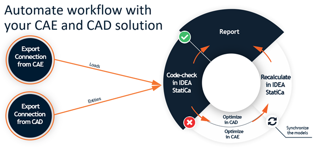 • Background calculation using CBFEM method solver initiated on-demand in CAE/CAD solution,