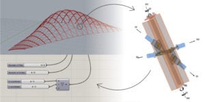Karamba3D, one of the software packages used in the workflow, is a parametric structural engineering tool that provides accurate analysis of spatial trusses, frames, and shells. Karamba3D is fully embedded in the parametric design environment of Grasshopper, a plugin for the 3d modeling tool Rhinoceros. This makes it easy to combine parameterized geometric models, finite element calculations and optimization algorithms like Galapagos.