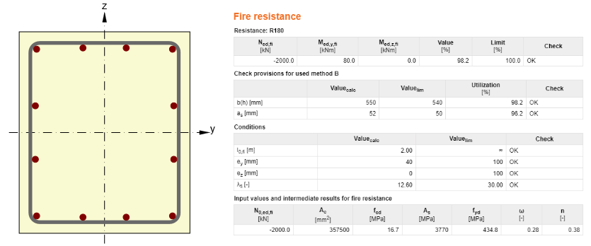 For code-checking the fire resistance of structures, the Tabulated method is mostly preferred, according to which the engineer gets a pass/fail status very quickly. More advanced methods such as the Isotherm 500 or Zone Method are also frequently used methods. The advanced methods are used when critical elements such as a column, beam, wall or slab fail in the tabulated method. Numerical simulation methods like conduction, convection or radiation are mainly applied in academic settings. IDEA StatiCa RCS contains the aforementioned Tabuled methods. The development at IDEA StatiCa moves the analysis from Tabuled methods to the level of numerical methods. Thus, you can look forward to non-stationary heat conduction analysis in IDEA StatiCa Member in the near future.