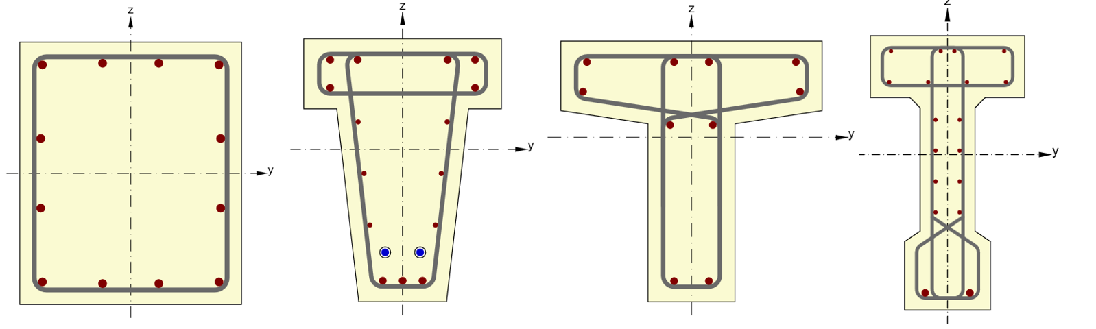 The code-check of beam elements is only possible for rectangular, T-section, or I-section cross-sections. In the next step, it is necessary to distinguish between single span or continuous beams.