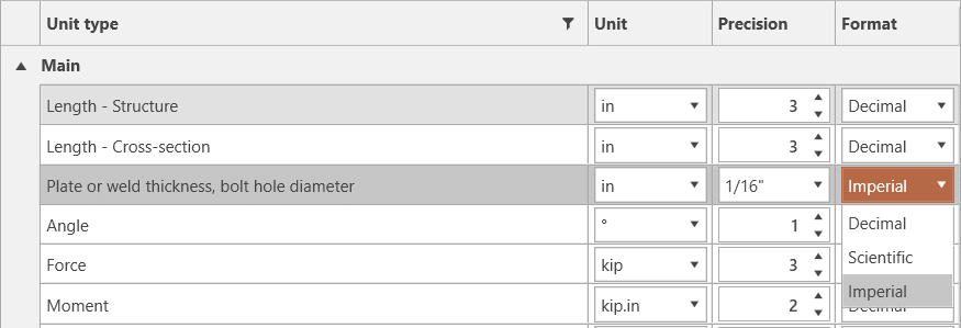 From now on, for all dimensions in the software, such as plate thickness, lengths, bolt spacing, member offset, etc., you can type in the values in inches in both imperial and decimal formats, such as: