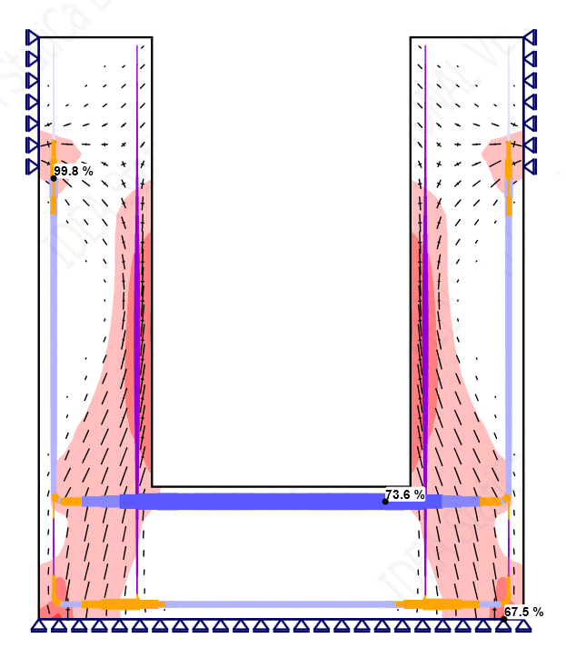 When checking this example manually, you use the Strut and Tie method, evaluate the compressive stress in concrete, and compare it with the design capacity value. Then you calculate the tensile stress and design a reinforcement accordingly. The job is done and you can move to another part of the project.