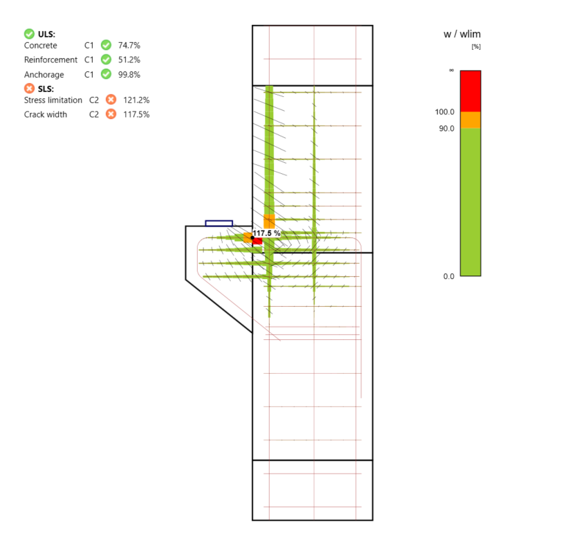 I've modeled the same corbel in IDEA StatiCa Detail. Let's check the results. As per the manual calculation using the SaT method, the ULS checks are okay. And I've confirmed that using the Detail application.