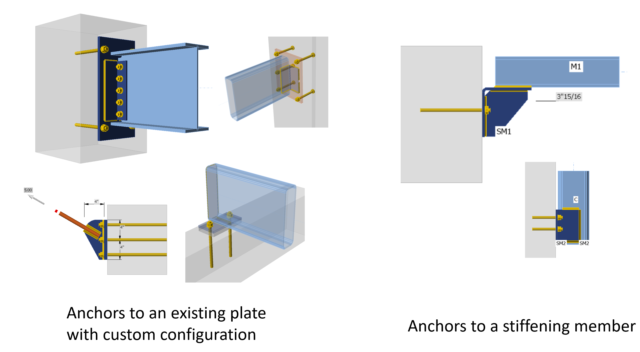 The grid operation helps you to add anchors to any plate in the model, so in this case, it is recommended when you have to model a custom connection design from a steel beam to a concrete block. Like the following cases: