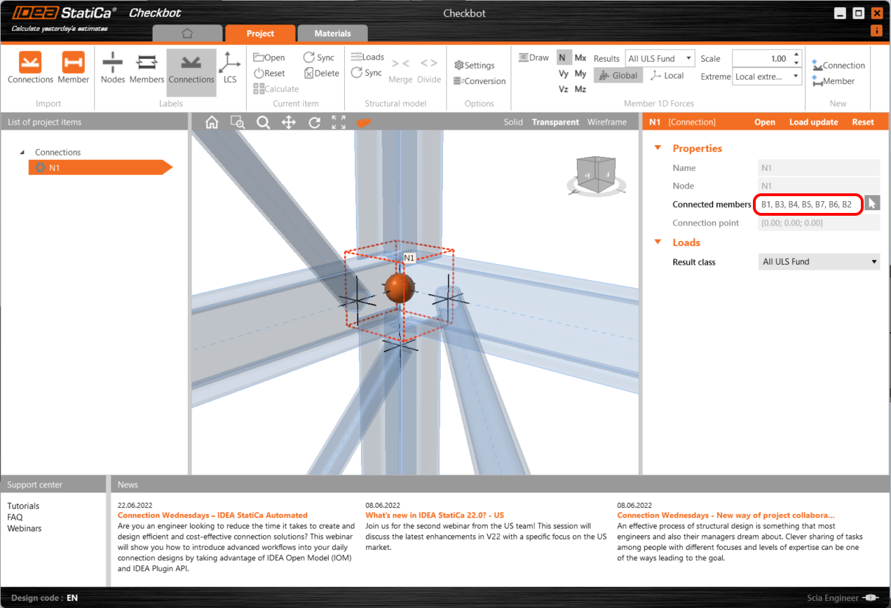 Once the model is in, it’s very easy to select a specific structural node and assess it in the Connection app.