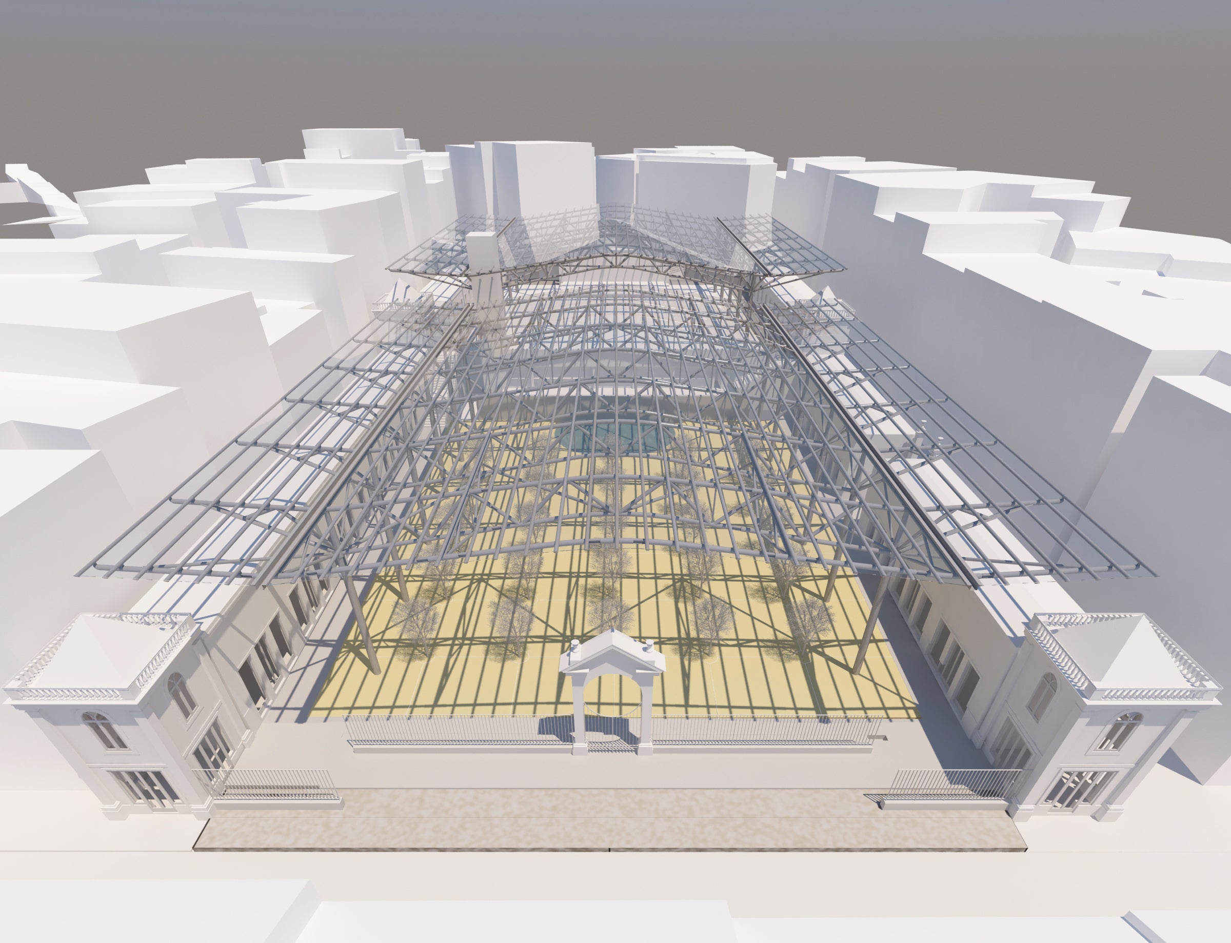 Moreover, the imposition of pre-cambers in the main trusses became imperative to precisely regulate deflections within the steel structure. This measure was crucial given the glass cover's sensitivity to substantial deflections, demanding meticulous control over the structural elements.