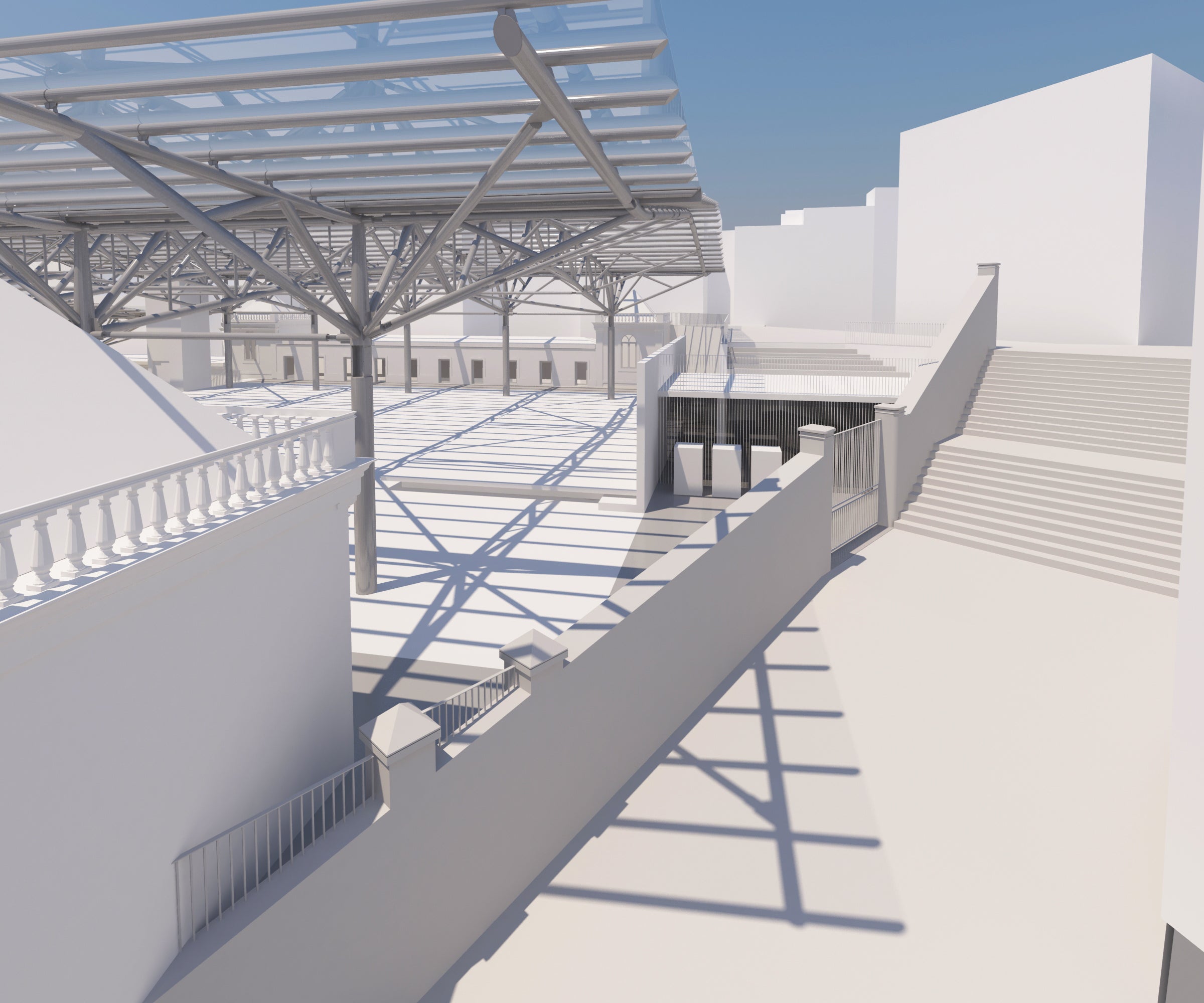 Central to the project is installing a roof canopy using a photovoltaic glass layer and extending it over the entire square. It is ingeniously designed to harness solar energy and generate a sustainable power supply for the operational needs of the market. With a collective expanse of 4,300 square meters, the canopy is strategically partitioned into two distinct platforms, namely the upper and lower platforms.