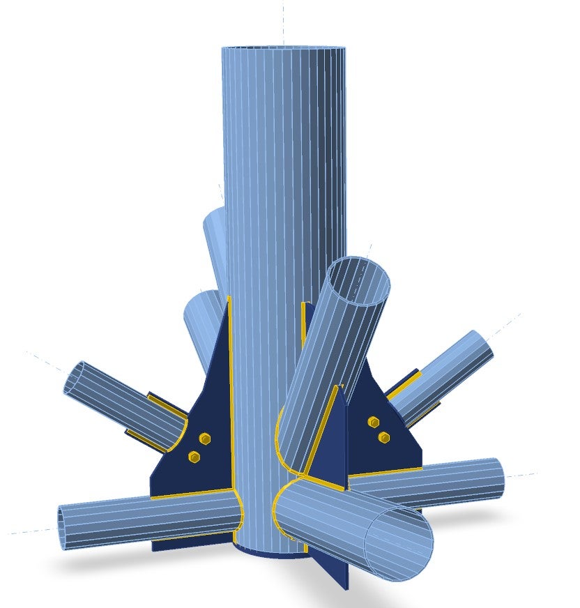 The steel framework posed numerous challenges, with many complexities. Most of them come from the requirements of the project architect and the fact that the whole structure was designed entirely from CHS profiles. For CHS profiles, there is, in general, very little guidance in codes, and more advanced numerical solutions are usually needed. This is especially the case with such complex geometry, resulting in nodes where structural members from different directions converged simultaneously.