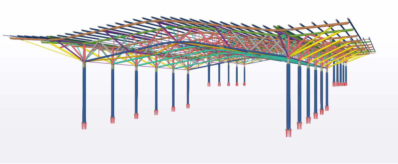 In accordance with architectural specifications, the entire structure was meticulously designed using circular hollow sections. The intricacies of the production process necessitated categorizing the steel structure under the EXC3 execution class as per the EN 1090-2 standard.