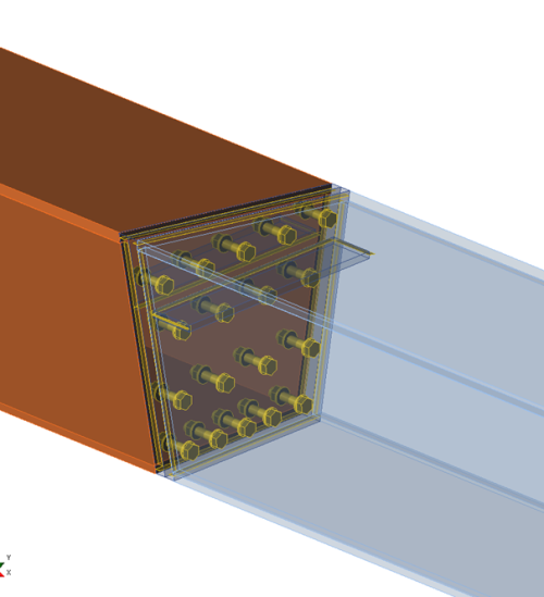 The structure is loaded with all 6 types of forces, incl. bending (torsion) around all axes. In IDEA StatiCa we were able to set a general typology and load the connection in required directions.
