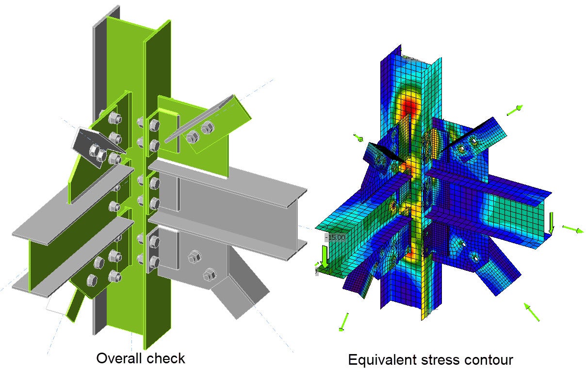 - Steel connection limit states were verified by IDEA StatiCa, as they are explicitly modeled while running FEA: