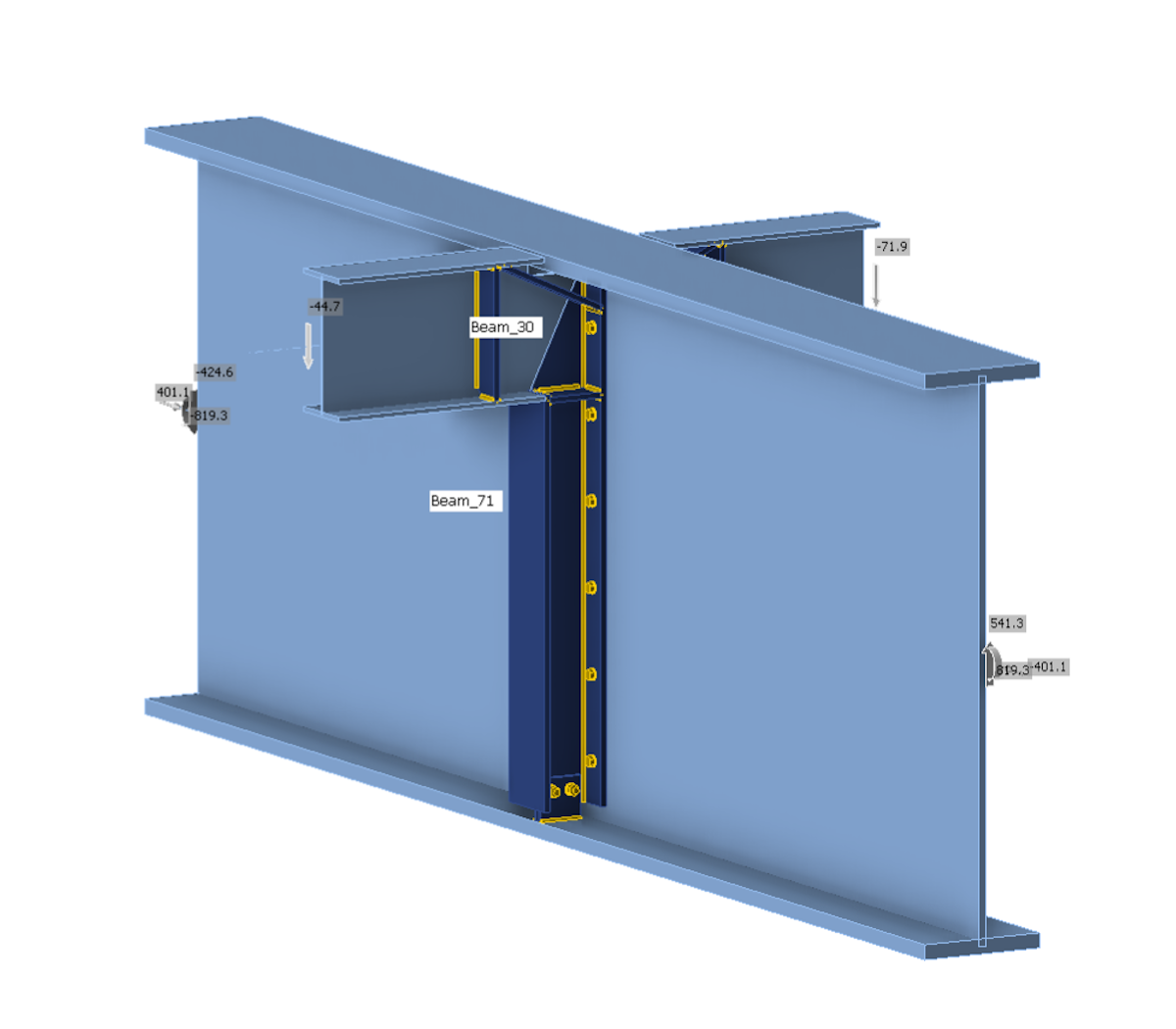Member Modeling: The model was then recreated from scratch in IDEA StatiCa Member. All beams were modeled as "analyzed members," using shell elements for detailed representation. Connections were modeled and assigned to the appropriate joints, and critical loads were applied to the model for final analysis.