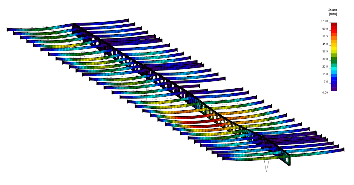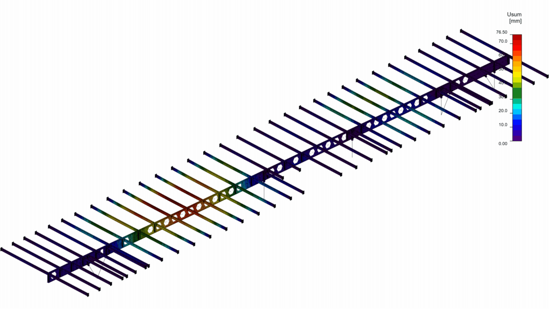 \[ \textsf{\textit{\footnotesize{Deflections on members from GMNIA analysis}}}\]