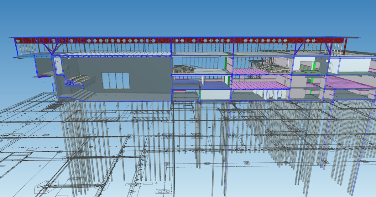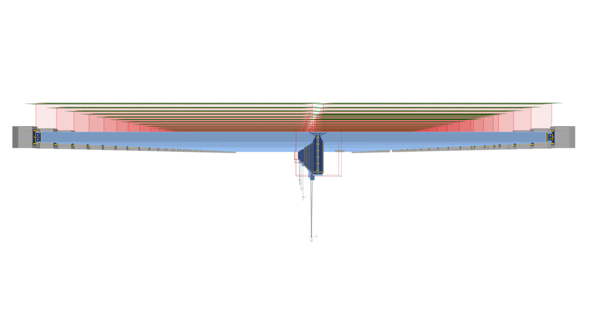 The engineering complexity was further heightened by the need to support six spans across the entire top floor, with the longest span reaching 27.49 meters. Additionally, the beam's final span was designedesgined as a cantilever, which not only extended outward but also supported a portion of the floor slab below, adding significant load and requiring meticulous structural analysis and design.