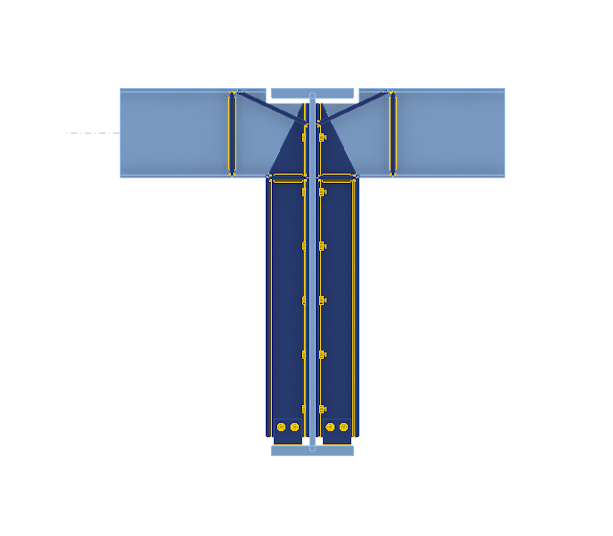 Connection Design and Stiffness Calculation: In IDEA StatiCa Connection, individual joints were designed, and the stiffness of these connections was calculated. This stiffness was then reintroduced into the RSA model, influencing the bending moment diagram of the castellated beam and the behavior of the related columns.