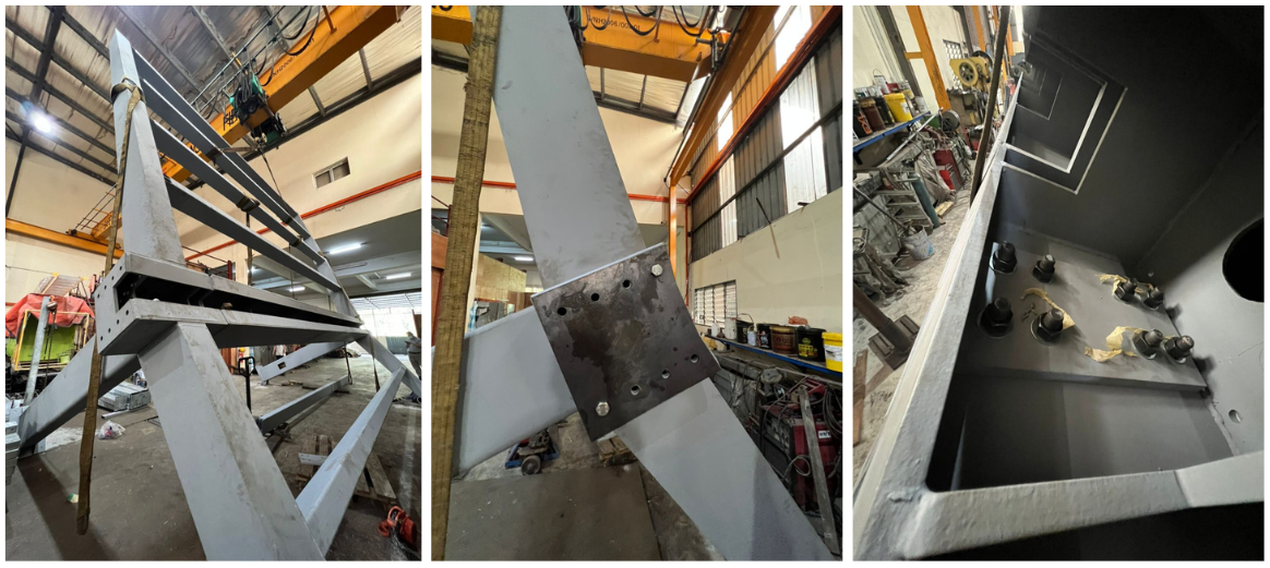Not only have Chew Ooi Teck and his team successfully modeled and constructed the special joint to connect the rafter column and the tie beam, but they met the cost, installation and operational constraints with minimum trial and error. They used a pair of U-shaped stiffener plates for strengthening and so were able to provide an un-welded backing plate to enable weld access and an opening at the top for the discharge pipe.