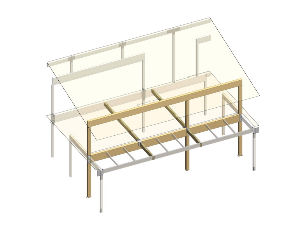 The original design was conceived as a steel system. So CRAFT was working with a steel-type building topology with the driver to do as much of it as possible in structural timber and wood.