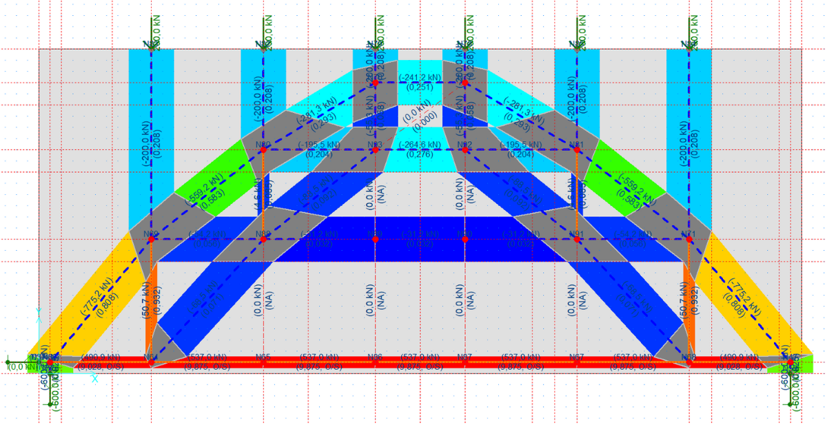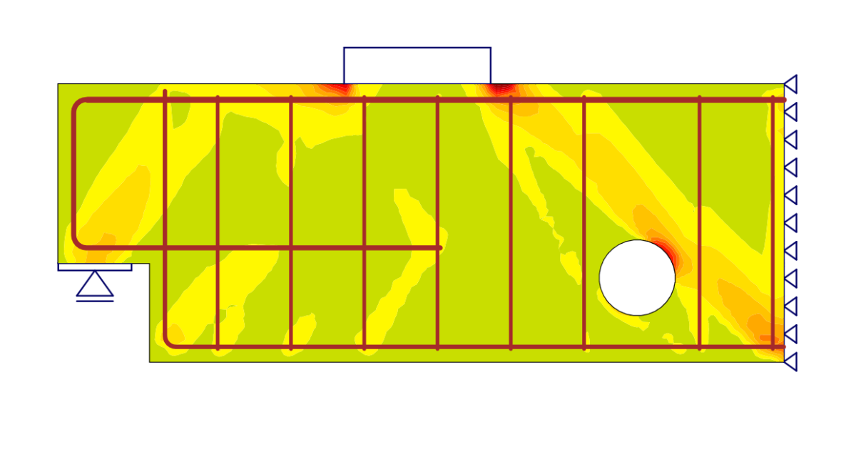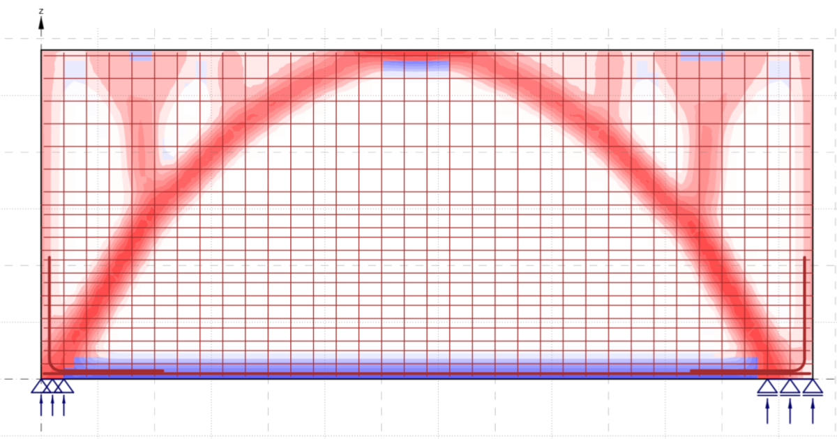 To ensure the accuracy of the design, the engineer also verified the results produced by IDEA StatiCa Detail using the strut-and-tie method. The comparison was conducted on a deep beam without opening to evaluate the distribution of forces. By cross-checking the results, the engineer confirmed the reliability of the software's analysis.