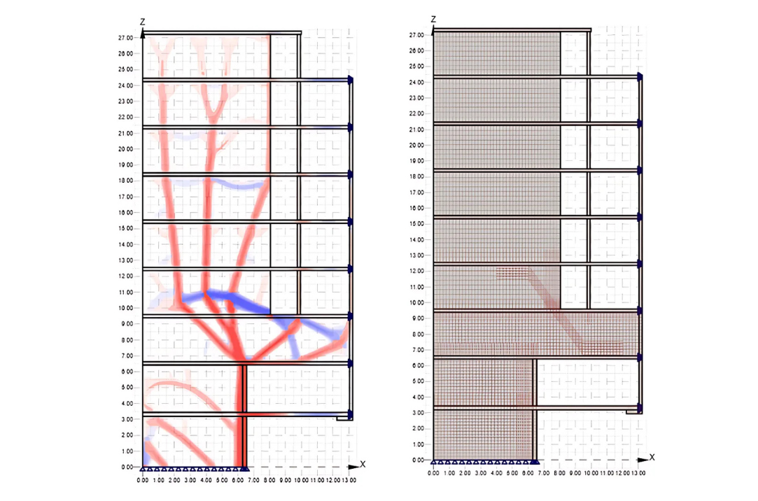 "In the first step, we designed the reinforcement based on topology optimization. While traditional reinforcement design based on dimensional moments gives results for an orthogonal arrangement, IDEA StatiCa Detail allowed us to place the reinforcement in an optimal position."
