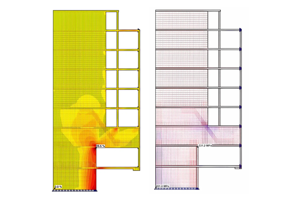 The following paper focuses on the design and code-check of one of the load-bearing walls using the Compatible Stress Field Method in IDEA StatiCa Detail.