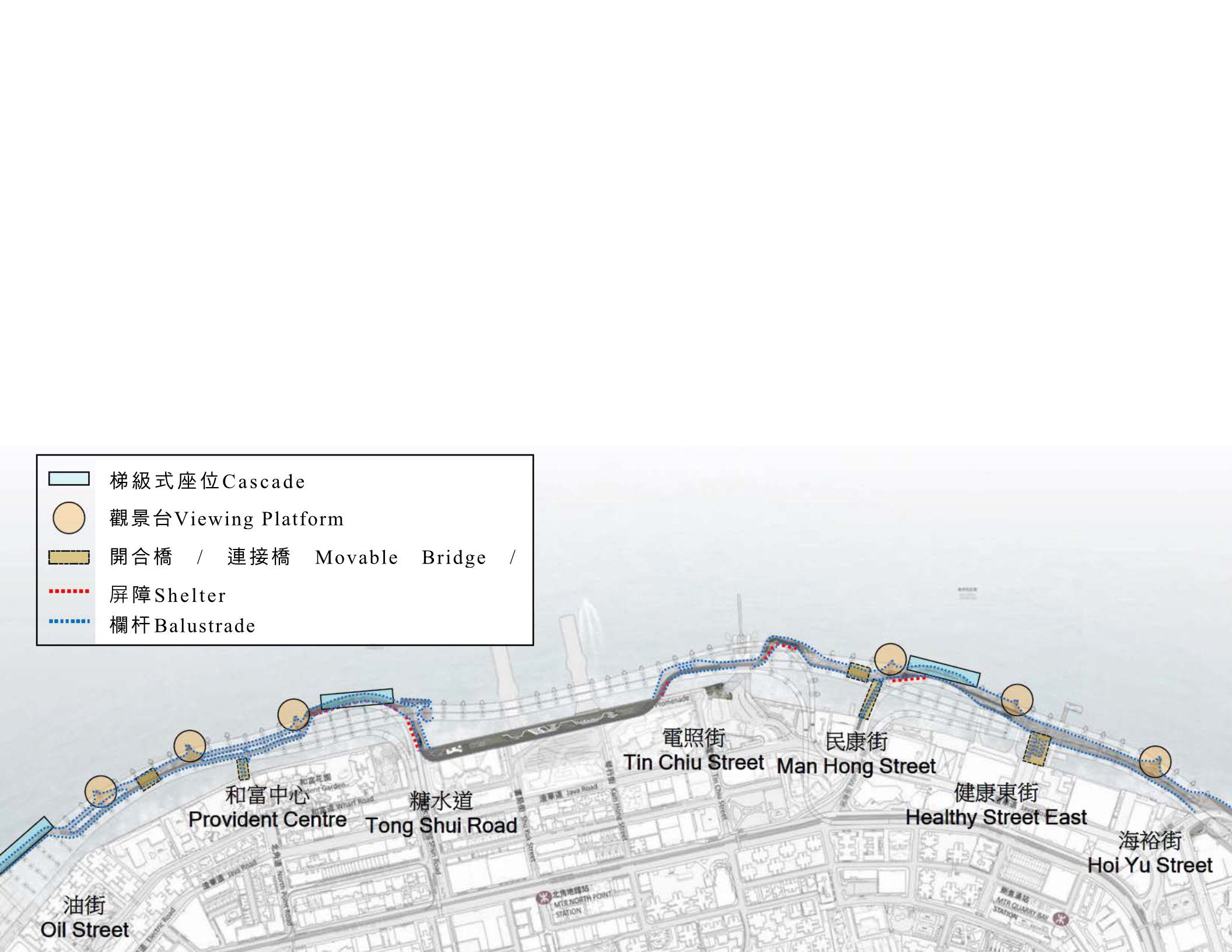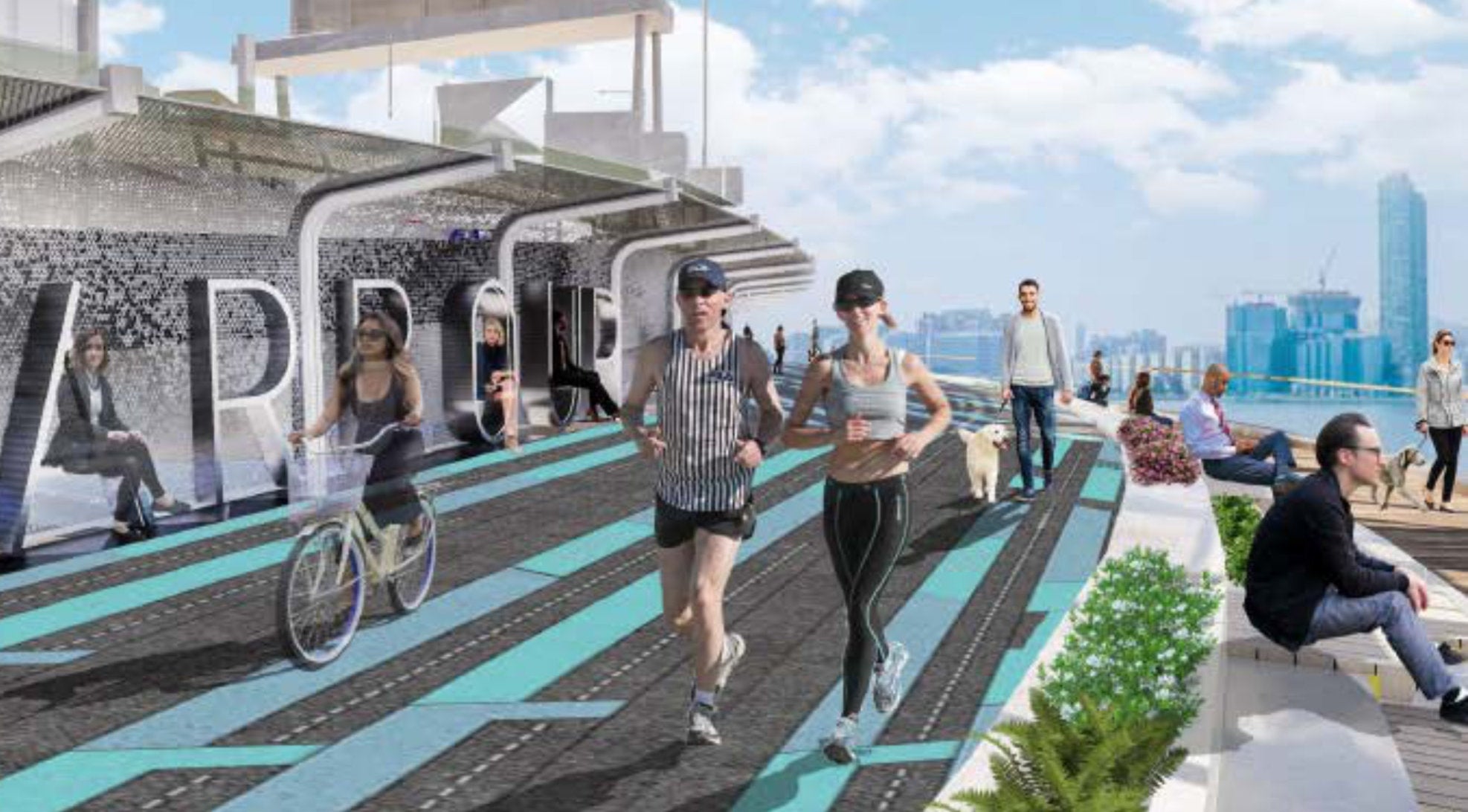 A pedestrian boardwalk beneath the Island Eastern Corridor elevated highway is a 2.2 km long landmark improving connectivity and accessibility along Victoria Harbour.