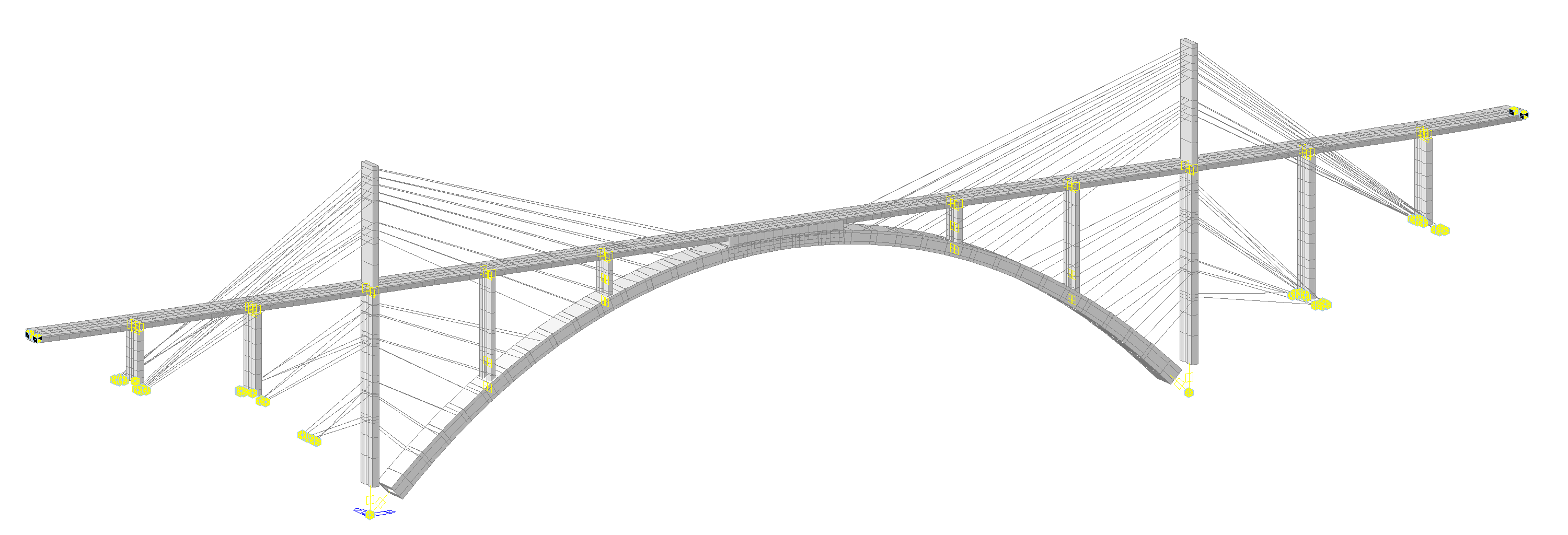 The engineering team also had to deal with other challenging tasks, such as the verification of the stay cables' effectiveness through geometrically nonlinear calculation, a second-order problem for slender piers through linear buckling analysis, and a nonlinear calculation for additional internal forces' evaluation.