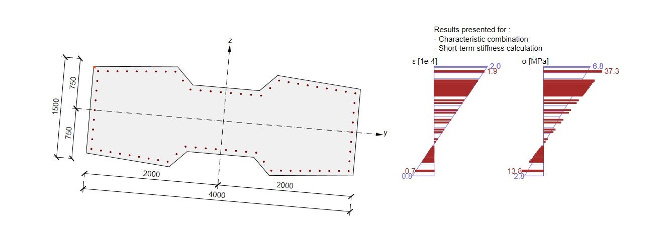 Another great advantage of IDEA StatiCa was its ability to create general cross-sections that would have otherwise been difficult to calculate by hand, especially their cross-sectional characteristics. See below the outputs from IDEA StatiCa RCS in which the arch box and the piers were code-checked.
