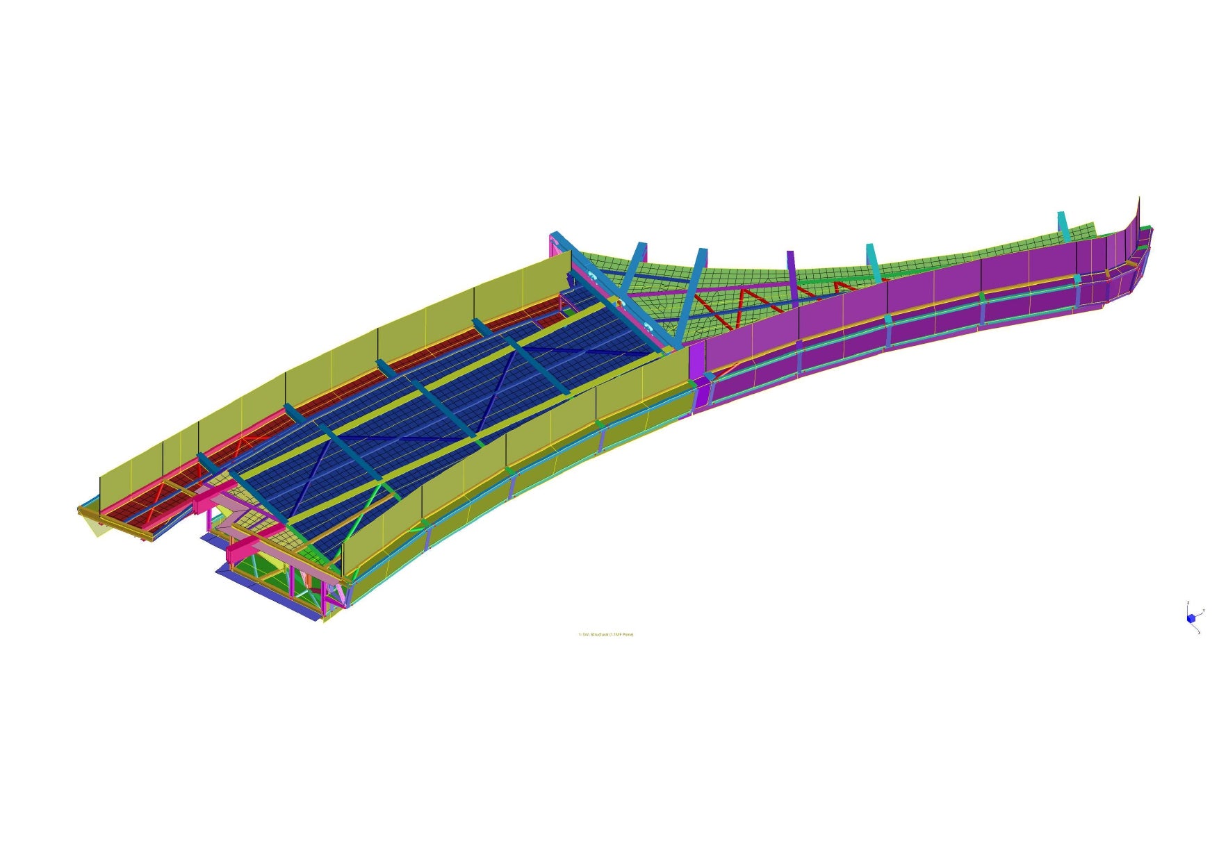 During the project, the profile of the deck required particular attention. Previously, it had been shaped like a boat hull in profile. By introducing a crank in both the top surface and the soffit, this meant it was necessary to have very complicated steel connections, where the secondary beam cranks through the primary truss line.