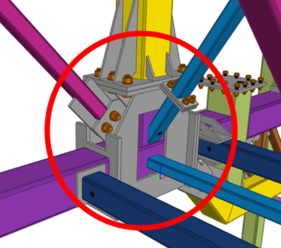 Prefabrication of the main trusses meant that there were several complicated intersections. The geometrical constraints coupled with the necessity to reduce steel costs through optimised connections led the team to use IDEA StatiCa Connection.