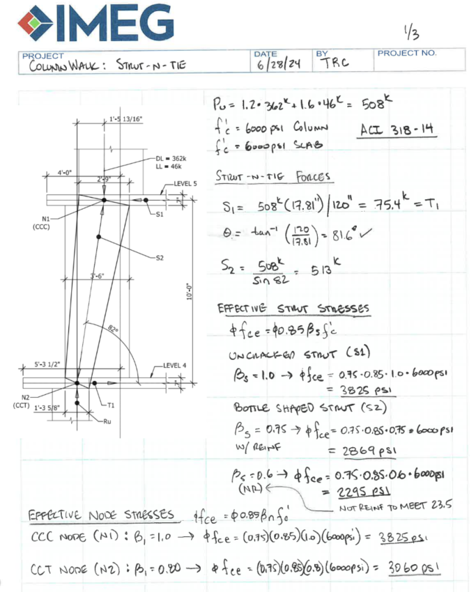 IMEG implemented IDEA StatiCa Detail to conduct a comparative analysis against ACI 318-14 strut-and-tie hand calculations. This approach was critical in validating key structural behaviors and ensuring compliance with engineering best practices.