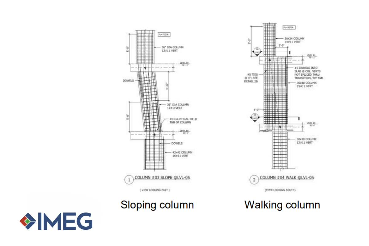 Walking columns present significant engineering challenges with no established ACI 318 methodology to guide their design. IMEG has mastered this specialized field through projects like The Laurel Rittenhouse Square in Philadelphia, where walking columns gradually transition loads over four floors to preserve a historic building while supporting 40+ stories above.