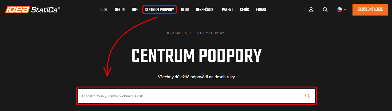 Komplexním zdrojem kvalitních informací je Centrum podpory IDEA StatiCa – obsahuje spoustu materiálů věnovaných právě navrhování přípojů. A díky robustnímu a propracovanému vyhledávacímu algoritmu získáte ty nejlepší výsledky, které odpovídají tomu, co hledáte.