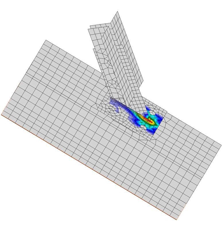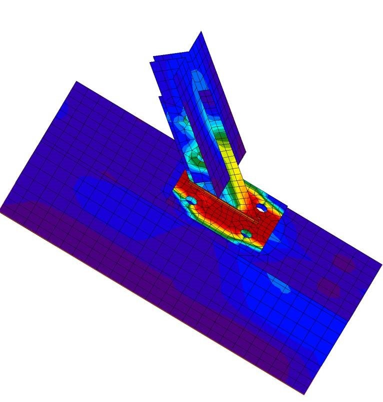 Jak vidíte na obrázku 1, ocelové šroubové vzpěry se skládají z tenké patní desky a svařované desky, které spojují pod úhlem základnu a stěny nebo rohy stěn nádrže a mohou být vystaveny namáhání ve výši až 75 kN. Historicky se návrh obvykle prováděl ručním výpočtem a ověření připojení bylo potvrzeno provedením drahých celoplošných laboratorních testů jednotlivých komponent i testováním plnohodnotných maket nádrží.