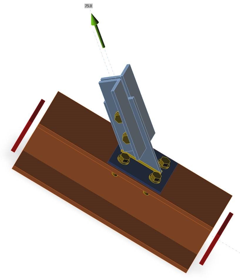 Obrázek 4: Celkové uspořádání spoje se šrouby a svary s axiálním zatížením 75 kN