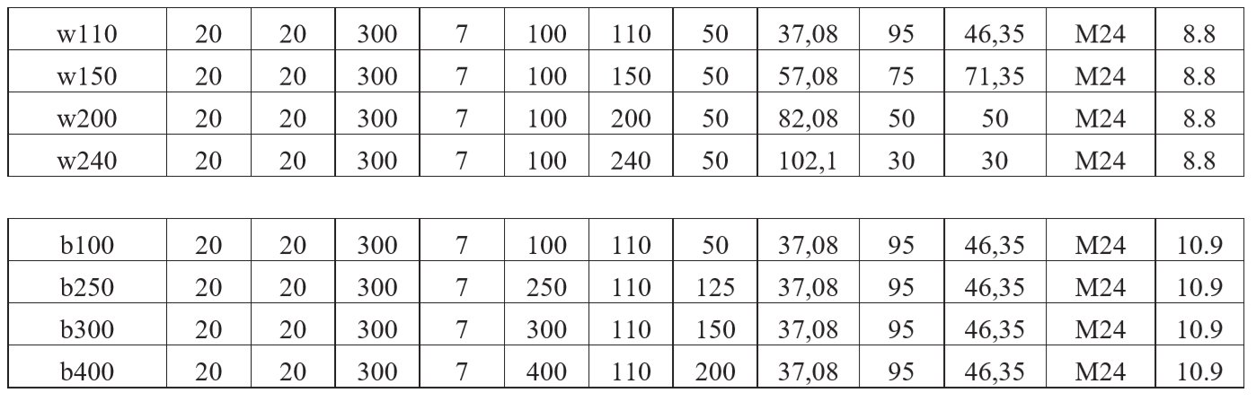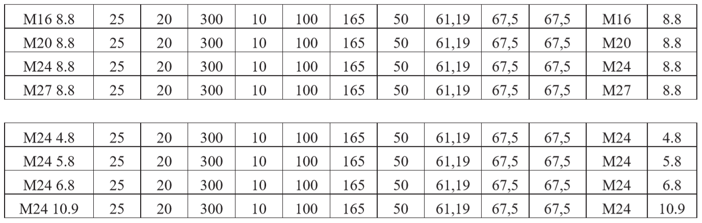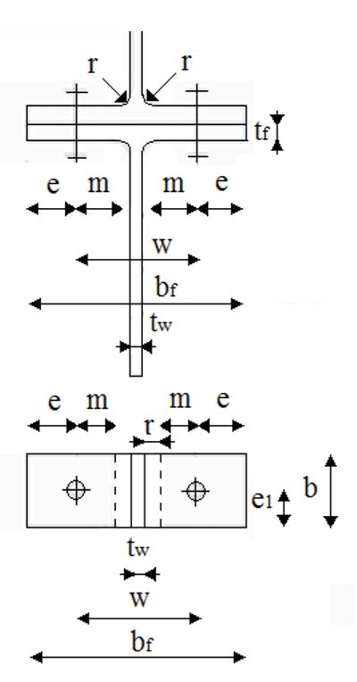 Welded T-stub and bolt in tension are components examined in the study. Both components are designed according to EN 1993-1-8:2005. The welds are designed not to be the weakest component. Effective lengths for circular and noncircular failures are considered according to EN 1993-1-8:2005 cl. 6.2.6. Only tension loads are considered. Three modes of collapse according to EN 1993-1-8:2005 cl. 6.2.4.1 are considered 1. mode with full yielding of the flange, 2. mode with two yield lines by web and rupture of the bolts and 3. mode for rupture of the bolts, see Fig. 5.1.1. Bolts are designed according to cl. 3.6.1 in EN 1993-1-8:2005. Design resistance considers punching shear resistance and rupture of the bolt.