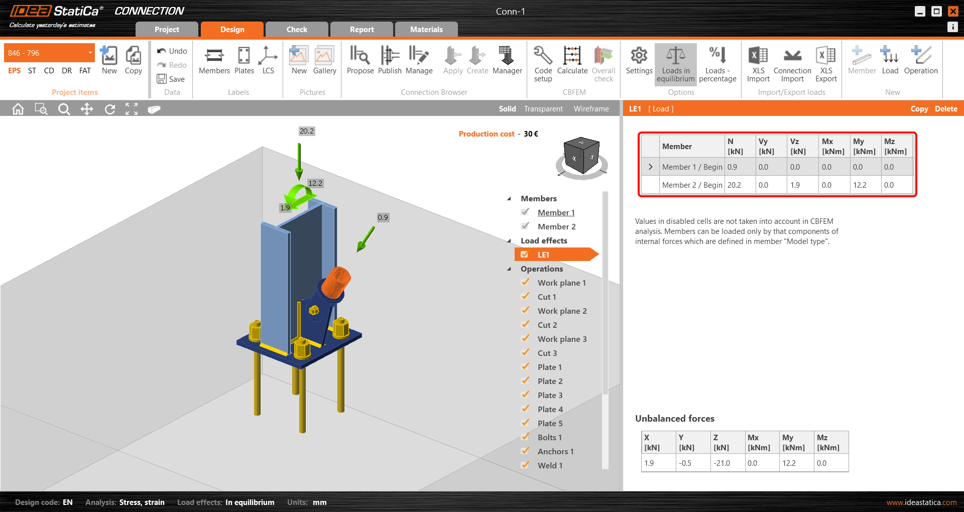 Importovaný přípoj se otevře v aplikaci IDEA StatiCa Connection.
