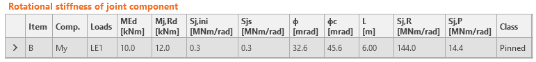 The rotational stiffness of this joint is very low and is classified as pinned.