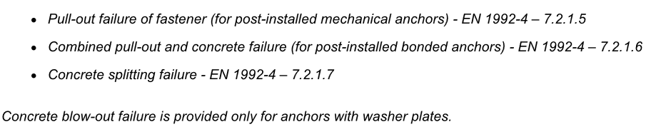 Lepená kotva - Dodatečně instalované (chemické kotvy) s možností zadat návrhovou hodnotu mezní pevnosti v soudržnosti na základě skutečně použitého materiálu a jeho technického listu (pevnost vazby), více v článku Pevnost v soudržnosti pro kotvy v Detailu.