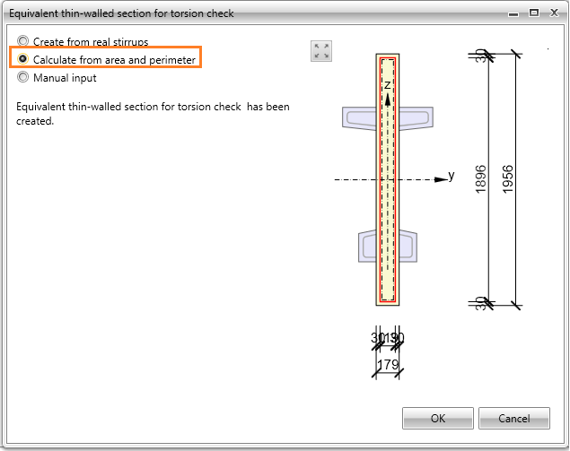 Pokud necháme program spočítat ho z obvodu a plochy dostaneme často nesmyslný tvar a velikost. K tomuto stavu se často dojde i nevhodnou volbou vložek účinných na kroucení.