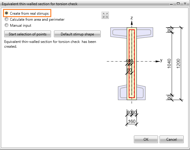 Pokud nastavíme určení náhradního průřezu ze skutečných třmínků dostaneme pravděpodobně očakávaný tvar a velikost