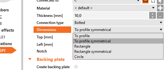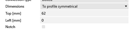 Poté zadejte pozice šroubů vyplněním hodnot Nahoře a Vlevo. U operace Čelní deska hodnoty představují vzdálenost od obrysu průřezu směrem ven.