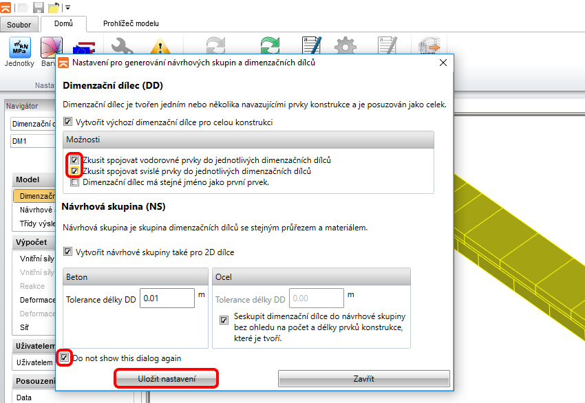Pokud importujete poprvé, proveďte nastavení generování návrhových skupin a dimenzačních dílců.