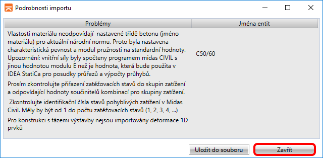 Pokud program narazí během importu na nějaké nesrovnalosti, tak Vám je zobrazí v okně Podrobnosti importu .