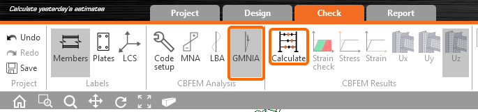 Nyní můžete spustit materiálně nelineární analýzu. Vyberte záložku Posudek, MNA a klikněte na Vypočítat.