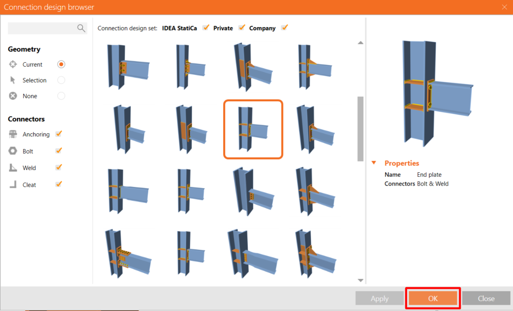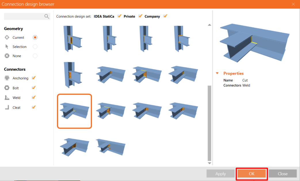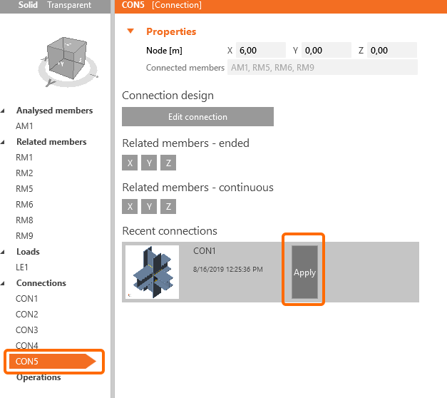 Pro návrh druhého styčníku klikněte na Připoj CON5 a poté na Použít.